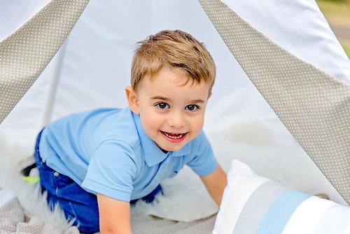 Wo ich am liebsten fotografiere: Draußen im Garten der Einrichtung. Entweder im freien Spiel oder in einem meiner liebevoll arrangierten Sets. Gerne nutze ich beispielsweise einen Limonadenstand oder ein Indianer-Tipi. Bei Einschulungsbilder an einer Grundschule dürfen natürlich auch die Tafel oder eine Schulbank nicht fehlen. Alle Sets sind immer so gewählt, dass sie sowohl für Mädchen als auch für Jungen in allen Altersklassen passend sind. Selbstverständlich bin ich bei schlechtem Wetter auch mit meinem mobilen Fotostudio unterwegs und fotografiere beispielsweise in der Turnhalle des Kindergartens.